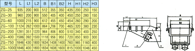 【產品簡述】:一、產品簡介  ZG系列振動給料機采用兩臺振動電機做的激振源,在遠離狀態(tài)下工作,與電磁振動給料機和擺式給料機比較,具有結...
